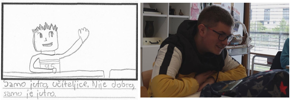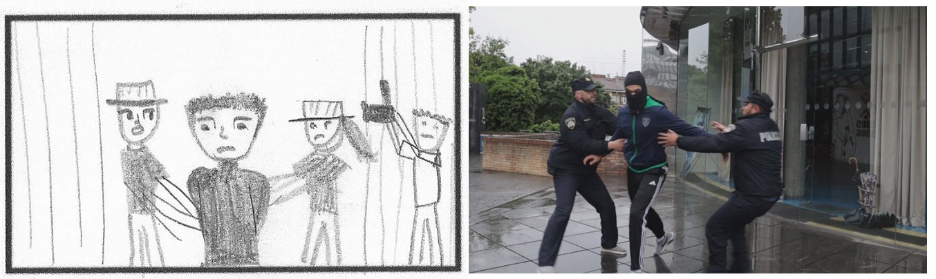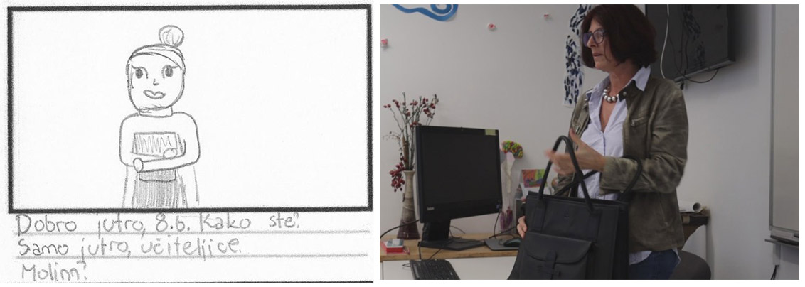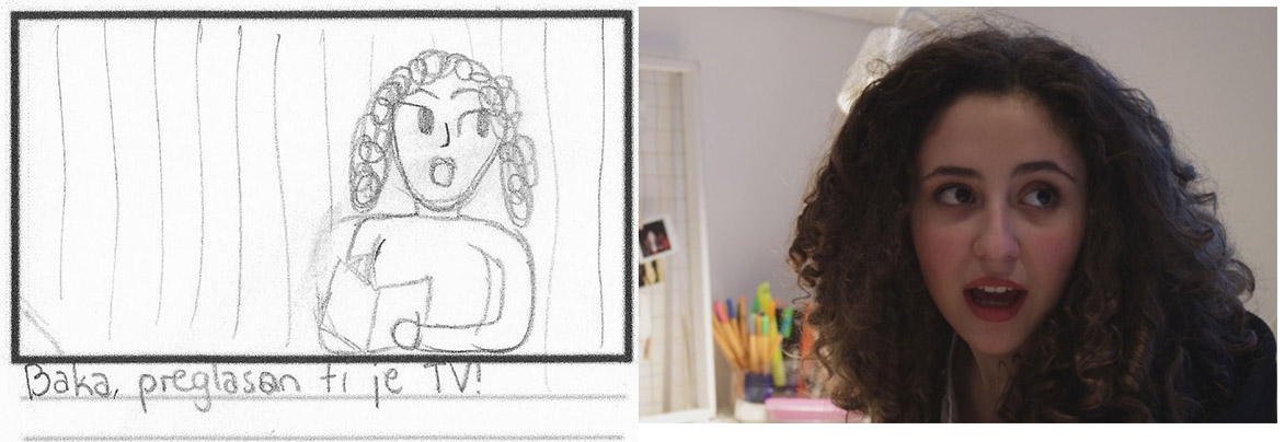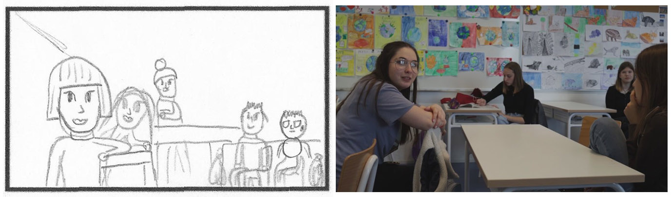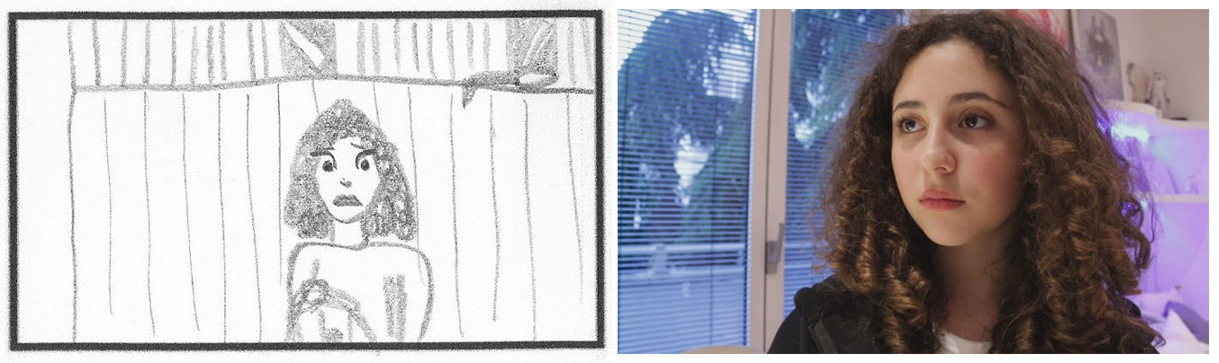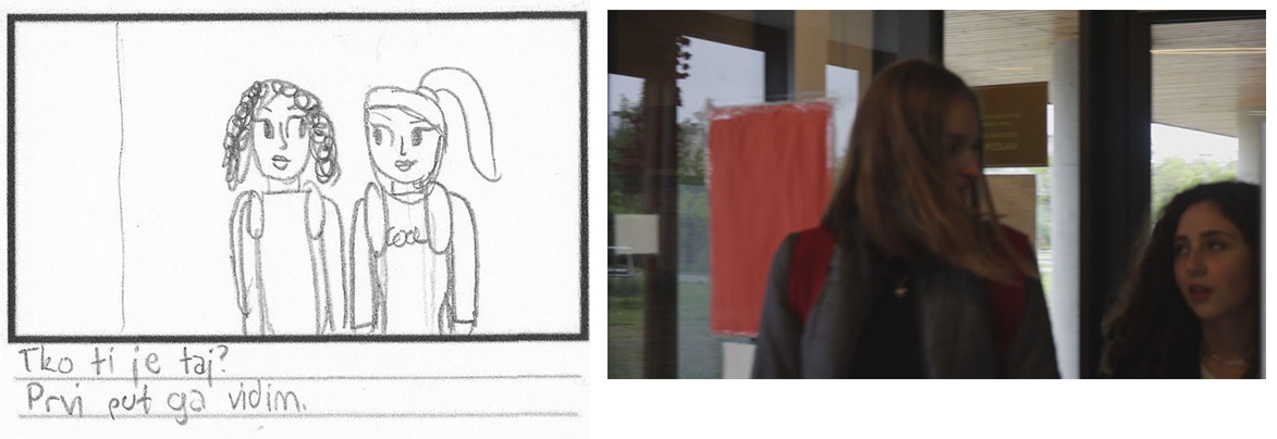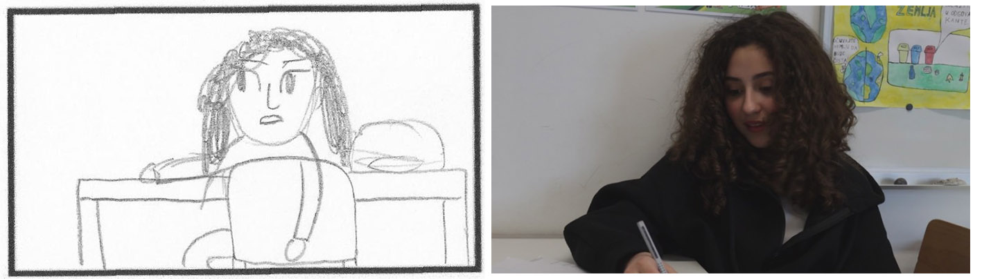 Lucija, koja je raspisala scenarij nakon maratonskih sastanaka u holu škole i ubacila u njega zadnji kadar – pravi pubertetski izljev bijesa u trenutku miješanih osjećaja, u ožujku 2020. je nacrtala u detalje cijeli storyboard (i to prije castinga i odabira lokacija!), bila je idealna za montažerku na daljinu – slali smo si nekoliko puta project fileove i uspjeli doći do finala par dana prije prijave za reviju dječjeg filmskog stvaralaštva.